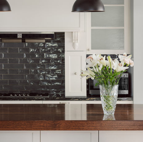 Practical inclusions are elevated by bespoke execution, from a custom wine cellar to cabinetry finishes that carry the material palette with clarity across the interior. A thoughtful interplay of texture and tone continues in the bathroom, where textured tiles and traditional joinery echo the character of the home.